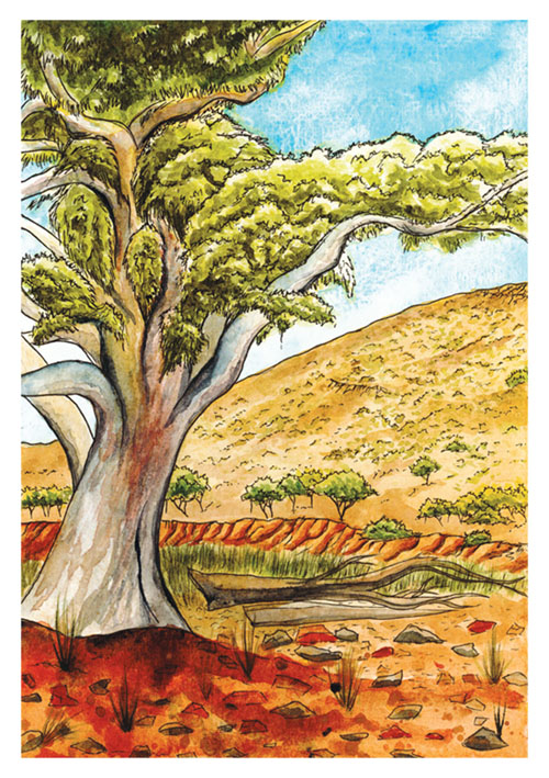 A5 Flinders Ranges Big Gum Watercolour Painting Print